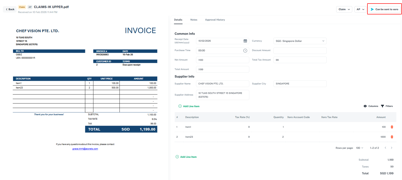 If you are seeing the status of "Cannot Be Sent" from the document detail or specific document, it does not mean there is any technical error to send to Xero. This means there are some fields that you may need to edit the details to send the documents to Xero successfully.