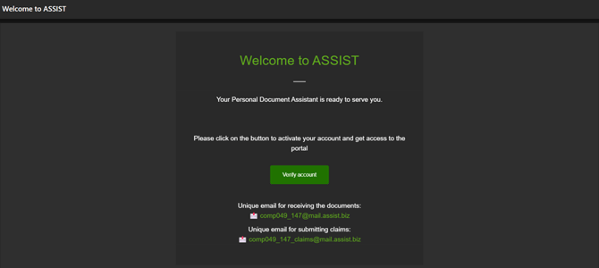 - You will receive an email notifying you of your account creation. If you don’t receive the email, kindly contact us via support@assist.biz.